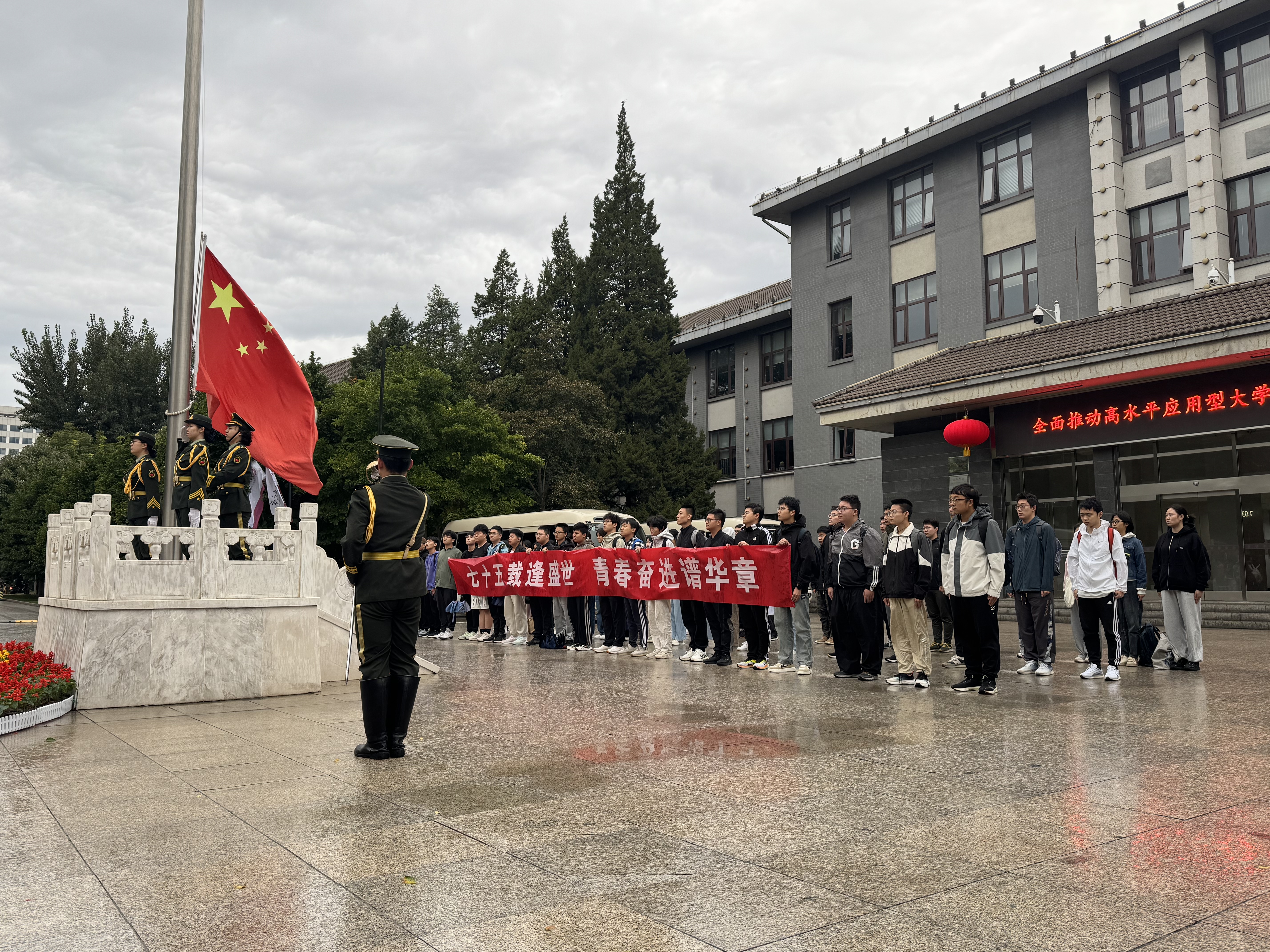 国旗班迈着铿锵有力的步伐升国旗、唱国歌。在晨光的照耀下,五星红旗冉冉升起,点燃了同学们心中的爱国热情。