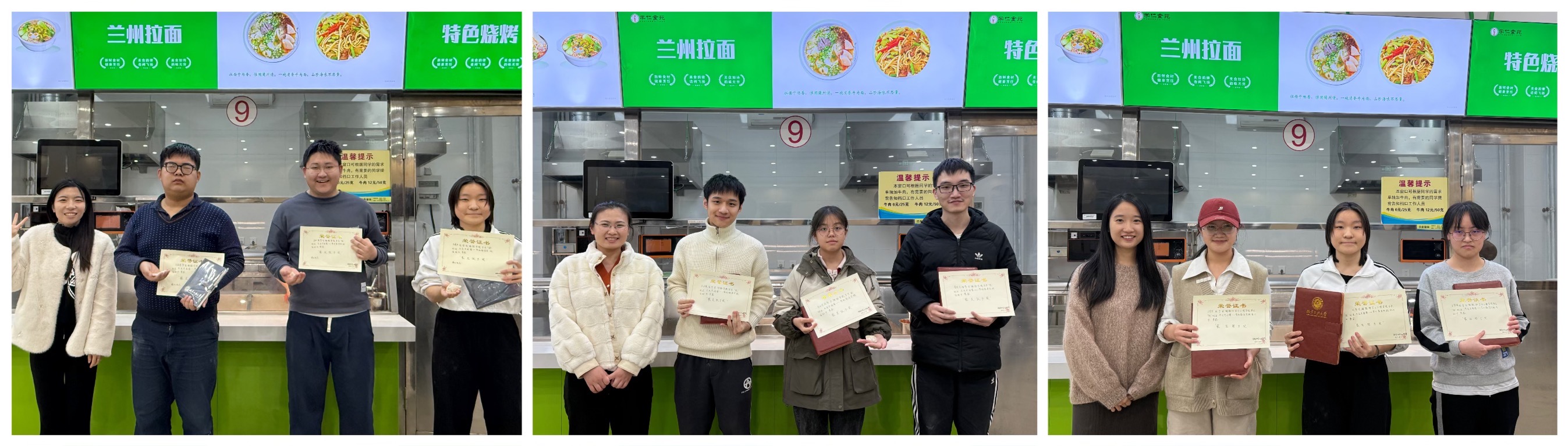 活动中,举行了包饺子比赛,经过激烈角逐,评比出了“最美饺子奖”“最怪饺子奖”和“最快包饺子奖”三个单项奖,9位同学获得奖励,三位班导师为获奖同学颁奖。